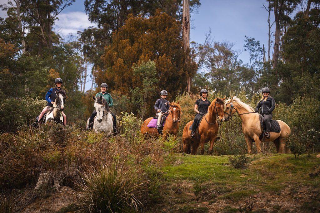 Harveydale is a working farm close to Deloraine. Our trails wind through rolling paddocks and native bush, with views across to Quamby Bluff. Depending on the season you might see wallabies, Echidnas and native birds as you ride. In spring and summer, wildflowers line the tracks; in the cooler months the light over the hills makes the landscape feel extra dramatic – it’s always a beautiful place to explore on horseback.