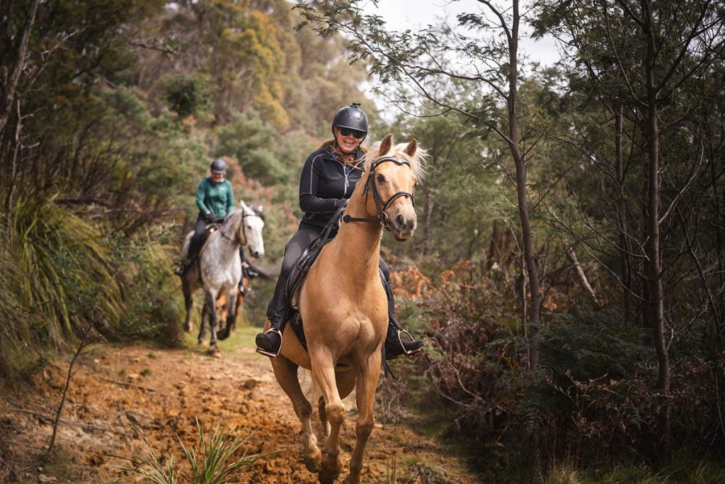 Eucalyptus forest, wildlife and sweeping farm views – a relaxed horse-riding experience for ages 5 and over and all abilities.